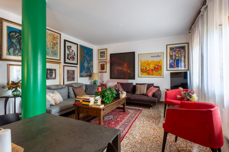 La pavimentazione della zona giorno è in terrazzo veneziano, zona notte in rovere e servizi rifiniti in ceramica.